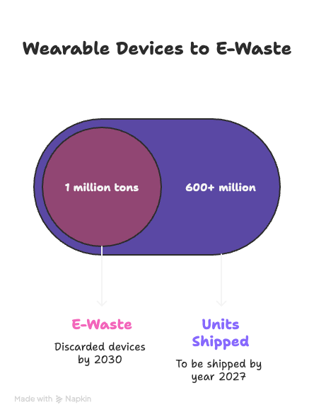 Wearables are marketed as health and lifestyle tools, but most are disposable by design. With a 2–3 year average lifespan, they contribute to the fastest-growing segment of short-lifespan electronics